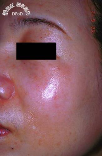 | 42歲女性做過美容雷射後一個月產生臉上的色素斑,希望能去除。 |