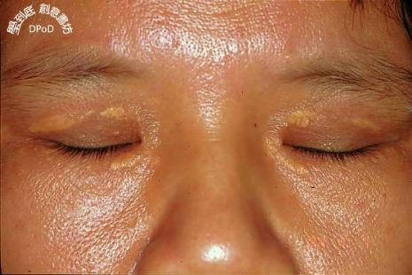 病人主述: 58歲女性,主訴眼皮周圍不痛不癢的黃色斑塊約有5年