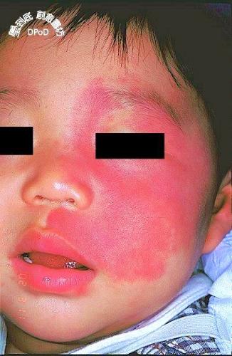 病人主述: 十四個月男童由家人帶來主訴臉上自出生就有紅色的胎記,想求醫治。